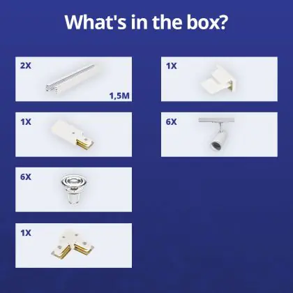 Descrizione Bright Choice Set completo 1-Fase Rail L 1,5 x 1,5 Metro Bianca | incl. 6x Faretti + GU10 2700K 3W Dimmerabile + Tappo Di Chiusura, Connettore di Alimentazione e L -Connettore