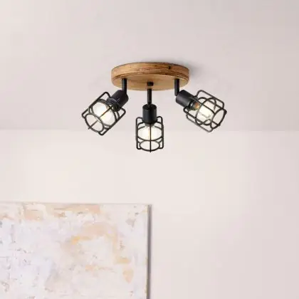 Brilliant Gwen Luce da soffitto Metallo Legna Nero | 350mm - Adatto per 3x E14
