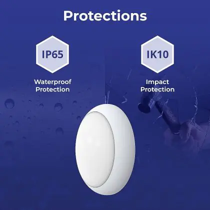 Un elemento importante delle plafoniere e delle applique LED è il loro livello di proezione IP, che indica la protezione contro l'ingresso di polvere e umidità/acqua. A partire da IP65, un apparecchio di illuminazione è a prova di polvere e acqua. Il valore IP di questa plafoniera LED è: IP65. Stai cercando una plafoniera LED per esterni? Allora presta attenzione alla protezione da urti e impatti, ovvero il valore IK, che per questa lampada è IK10 - 20 Joule.