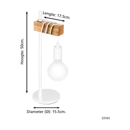 Eglo Lampada Da Tavolo Townshend Acciaio Bianca Legna | IP20 - Adatto per 1x E27
