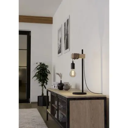 Eglo Lampada Da Tavolo Townshend Acciaio Legna Nero Marrone | IP20 - Adatto per 1x E27
