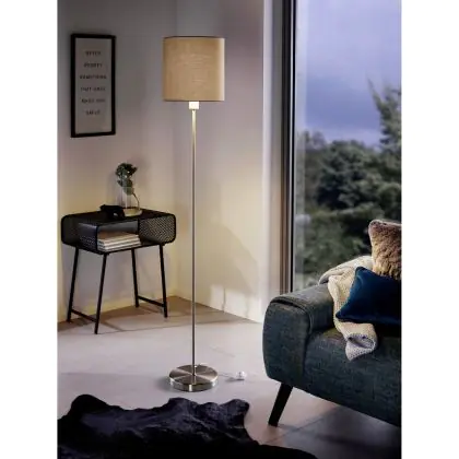 Eglo Lampada da terra Pasteri Acciaio Nichel Satinato Taupe | IP20 - Adatto per 1x E27