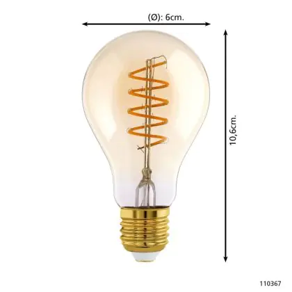 Descrizione Eglo LED Pera E27 Filamento Ambra 8W 806lm - 827 Bianco Molto Caldo | Dimmerabile - Sostitutiva 60W
