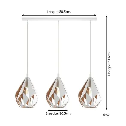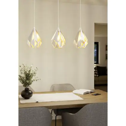 Eglo Luce Pendente Carlton 1 Acciaio Bianca Oro | IP20 - Adatto per 3x E27
