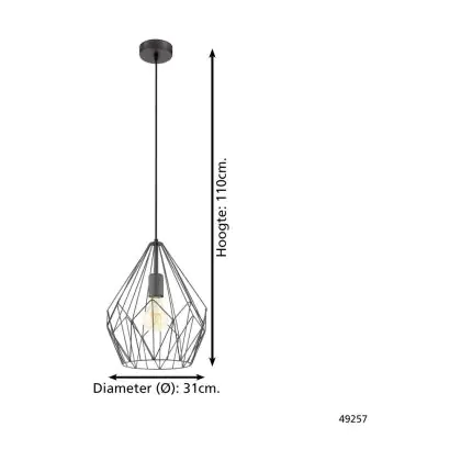 Eglo Luce Pendente Carlton Acciaio Nero | IP20 - Adatto per 1x E27