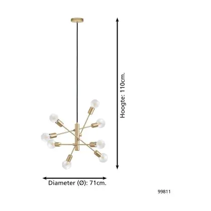 Eglo Luce Pendente Gradoli 1 Acciaio Oro | IP20 - Adatto per 8x E27
