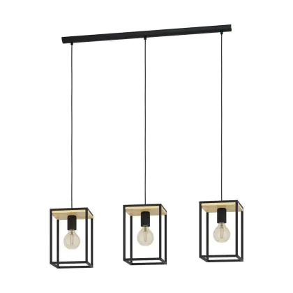 Eglo Luce Pendente Libertad Acciaio Legna Nero Marrone | IP20 - Adatto per 3x E27