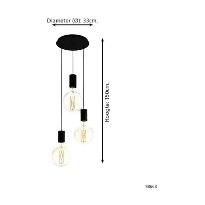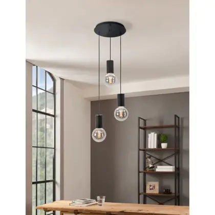 Eglo Luce Pendente Pozueta Acciaio Nero | IP20 - Adatto per 3x E27
