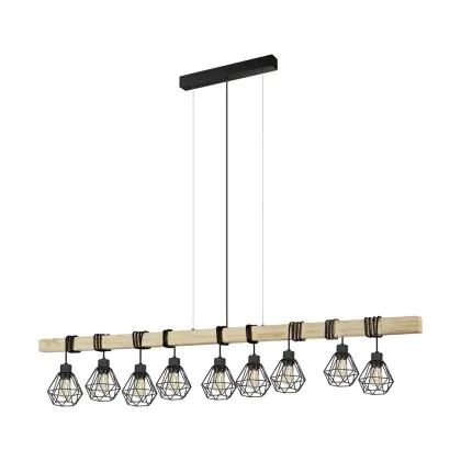 Eglo Luce Pendente Townshend 5 Acciaio Legna Nero | IP20 - Adatto per 9x E27