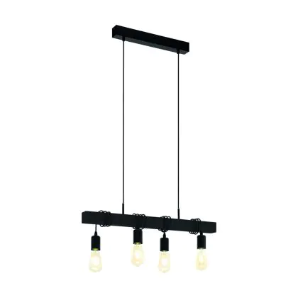 Eglo Luce Pendente Townshend Acciaio Legna Nero | IP20 - Adatto per 4x E27