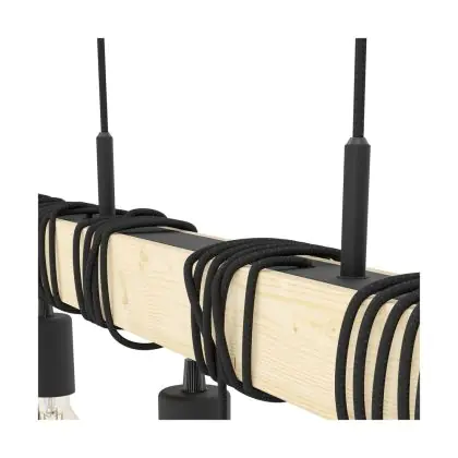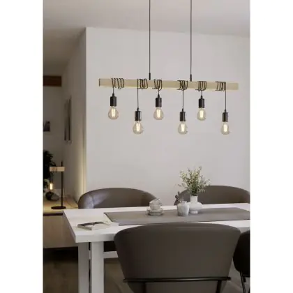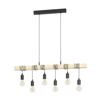 Eglo Luce Pendente Townshend Acciaio Legna Nero Marrone | IP20 - Adatto per 6x E27
