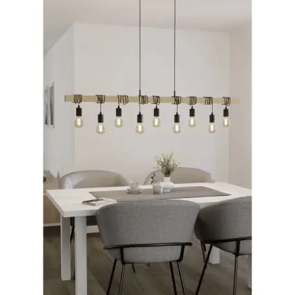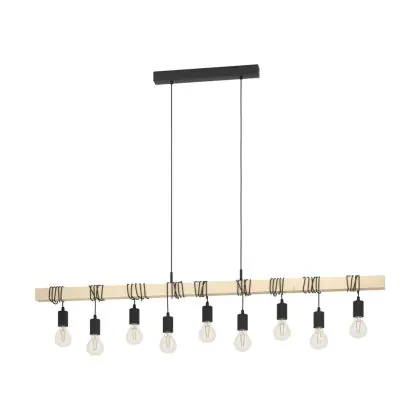 Eglo Luce Pendente Townshend Legna Acciaio Marrone Nero | IP20 - Adatto per 9x E27