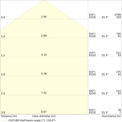 ![]() Il codice colore è una combinazione di resa cromatica (CRI) e colore della luce (Kelvin). La prima cifra indica la resa cromatica (1 = resa del colore molto bassa, 9 = massima resa del colore), mentre la seconda e la terza si riferiscono al colore della luce. Esempio: il codice colore 830 indica una buona resa cromatica (8) e luce bianca calda (3000K). |