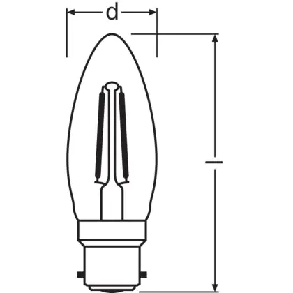 Descrizione Ledvance Classic Performance LED Bulbo B22d Candela Filamento Chiara 2.5W 250lm - 827 Bianco Molto Caldo | Sostitutiva 25W