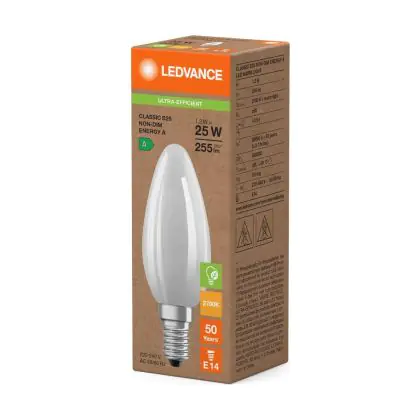 Risparmierai fino al 90% sui costi energetici e di mantenimento, grazie al basso consumo di energia assorbita dai 1.2W e ad una vita media utile di 50000 ore. A confronto: le lampade ad incandescenza tradizionali durano solamente 1000 ore. L’installazione delle lampadine LED è molto semplice: basta svitare le vecchia lampadina E14 a freddo ed avvitare la nuova lampada Ledvance Candela. Questo prodotto possiede la garanzia di qualità offerta da Ledvance e prezzi accessibili che partono da . Potrai utilizzare queste lampade usufruendo della Garanzia Totale Lampadadiretta.it di 5 anni.