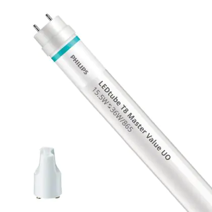 Il Philips Tubo LED T8 MASTER Value (EM/Mains) Ultra Output 15.5W 2500lm - 865 Luce del Giorno | 120cm - Sostitutiva 36W è l’alternativa perfetta per il tubo fluorescente standard 36W nelle plafoniere con un reattore. Con questo tubo LED hai una garanzia di una vita media utile molto lunga e 5 anni Lampadadiretta.it di totale garanzia. .