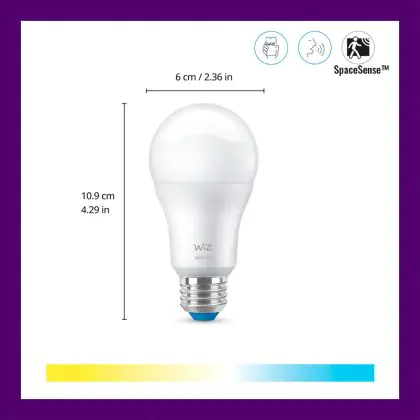 La WiZ Smart LED E27 Pera Ghiaccio 8W 806lm | Miglior Resa Cromatica - Dimmerabile - Sostitutiva 60W è la perfetta sostituzione per la tua lampada convenzionale 60W con attacco E27 grazie alla sua tecnologia LED. Passare a LED ti offrirà tanti vantaggi!